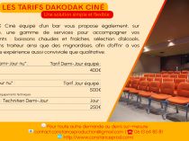 DAKODAK Ciné équipé d'un bar vous propose également, sur demande, une gamme de services pour accompagner vos événements : boissons chaudes et fraîches, sélection d'alcools, prestations traiteur ainsi que des mignardises, afin d'offrir à vos invités une expérience aussi conviviale que qualitative.