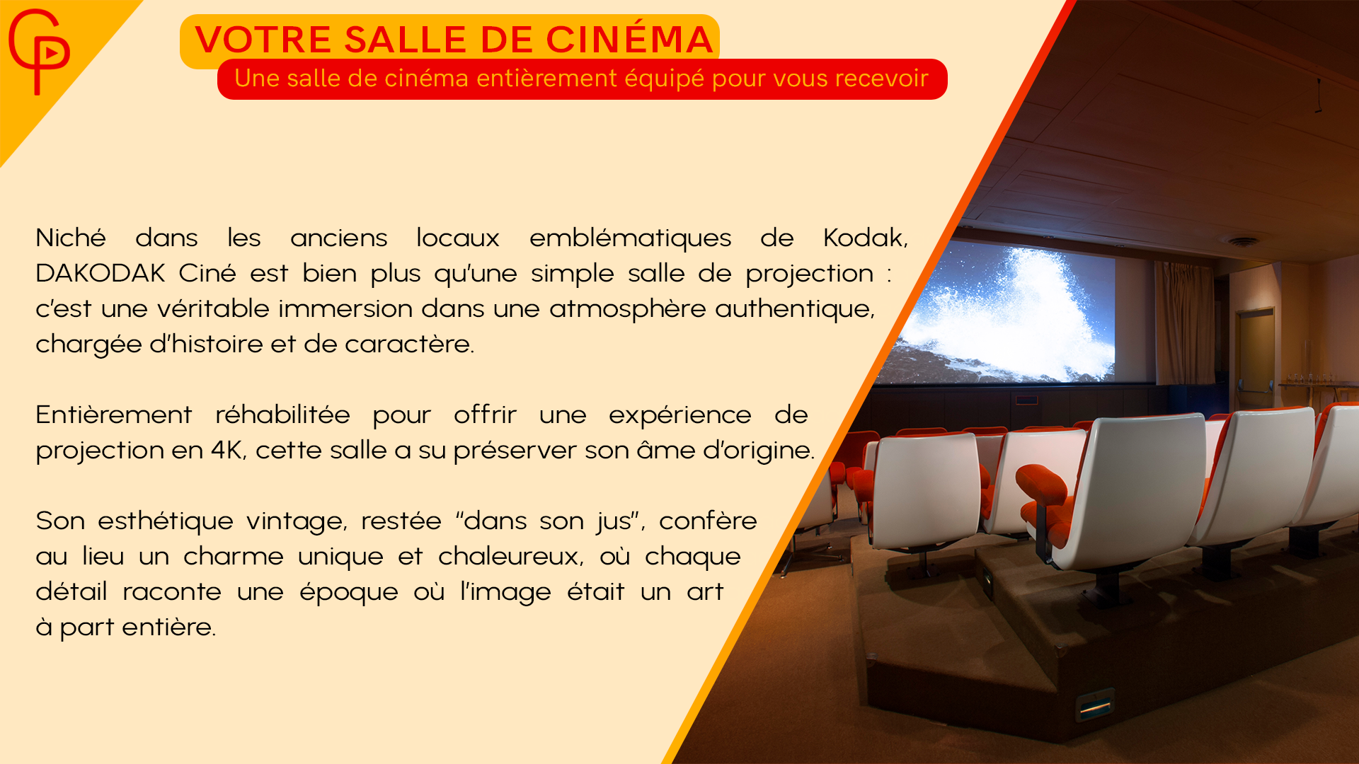 Niché dans les anciens locaux emblématiques de Kodak. DAKODAK Studio est bien plus qu'une simple salle de projection :