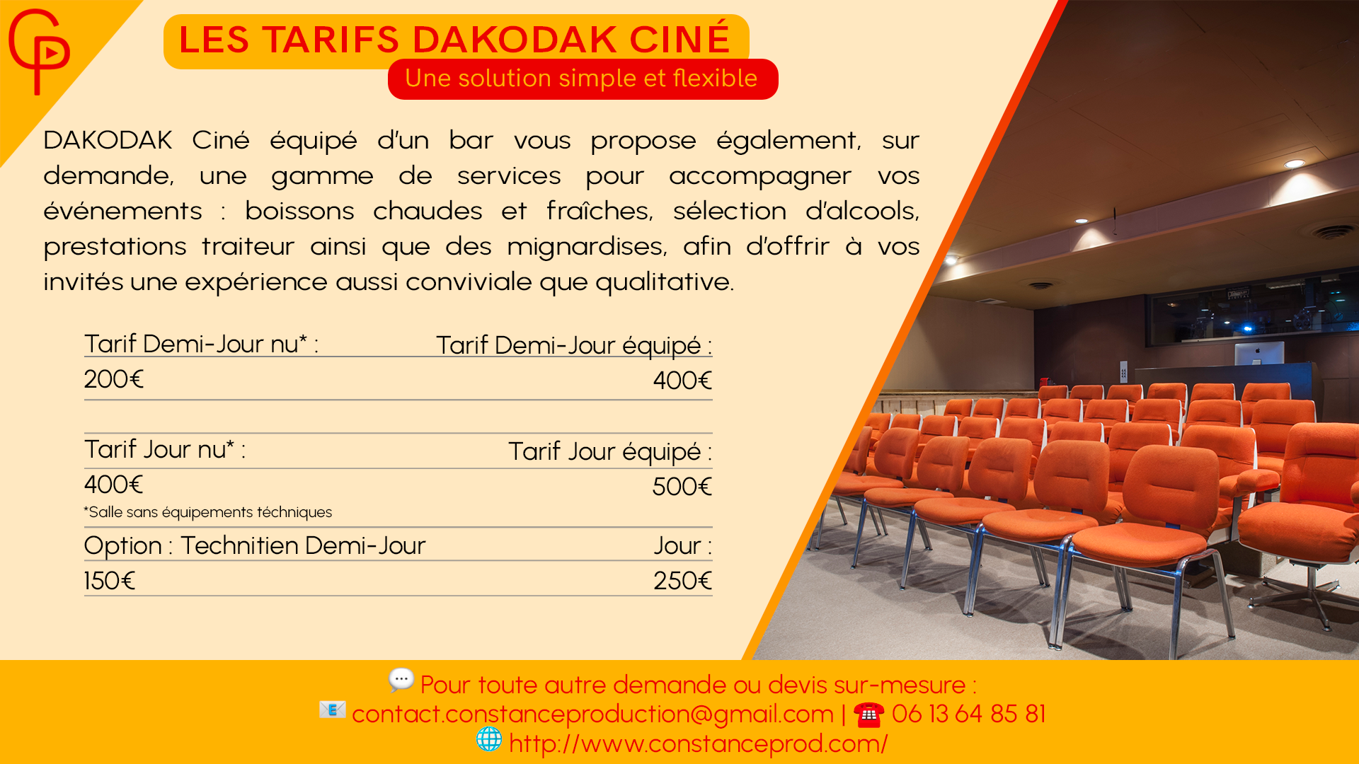 Pour toute autre demande ou devis sur-mesure : contact.constanceproduction@gmail.com ou 06 13 64 85 81